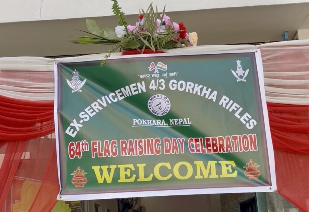 पोखरा — भारतीय सेनाको फोर थ्री गोर्खा राइफल्सका भूतपूर्व सैनिकहरूले पोखरामा आफ्नो ६४औँ फ्ल्याग राइजिङ डे भव्य रूपमा मनाएका छन्। पोखरा–स्थित स्वागत पार्टी प्यालेसमा आयोजित कार्यक्रममा गण्डकी प्रदेशमा बसोबास गर्दै आएका पल्टनका भूतपूर्व सैनिकहरूको उल्लेख्य सहभागिता रहेको थियो।